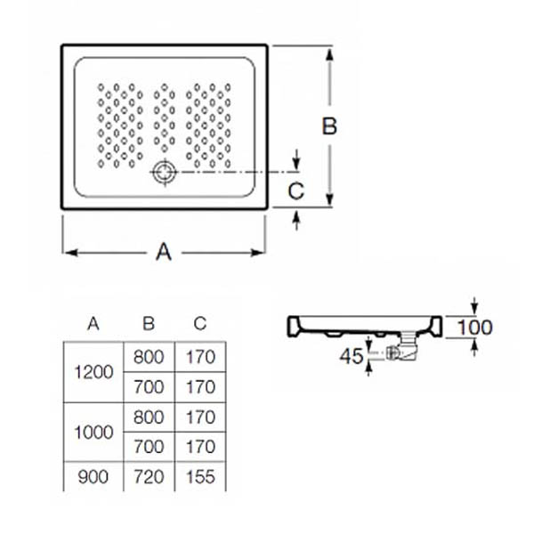 Ντουζιέρα Ορθογώνια Roca 100x70cm