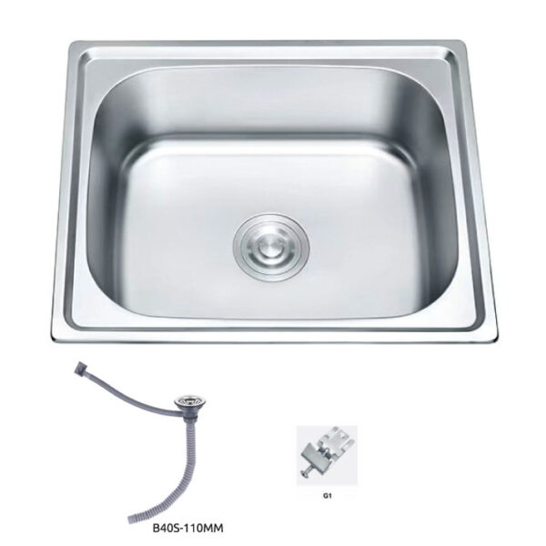 Ορθογώνιος, μονός νεροχύτης με καθαρές γραμμές KS-5040-304. Διαθέτει λεία επιφάνεια που προσδίδει μια μοντέρνα αίσθηση και ταιριάζει με κάθε είδους πάγκο. Περιλαμβάνει οπή για την εύκολη τοποθέτηση της αναμικτικής μπαταρίας απευθείας πάνω στο σώμα του νεροχύτη.